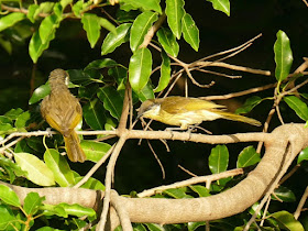 | Varied Honeyeaters Gavicalis versicolor are active and noisy all along the waterfront. This is a closely coastal bird, found from Townsville to New Guinea. |